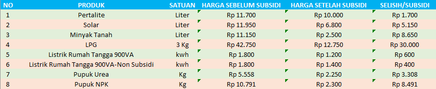 "Selama ini pemerintah menanggung selisih antara harga keekonomian dan harga yang dibayar masyarakat melalui pemberian subsidi dan kompensasi, baik energi dan nonenergi," ujar Purbaya.